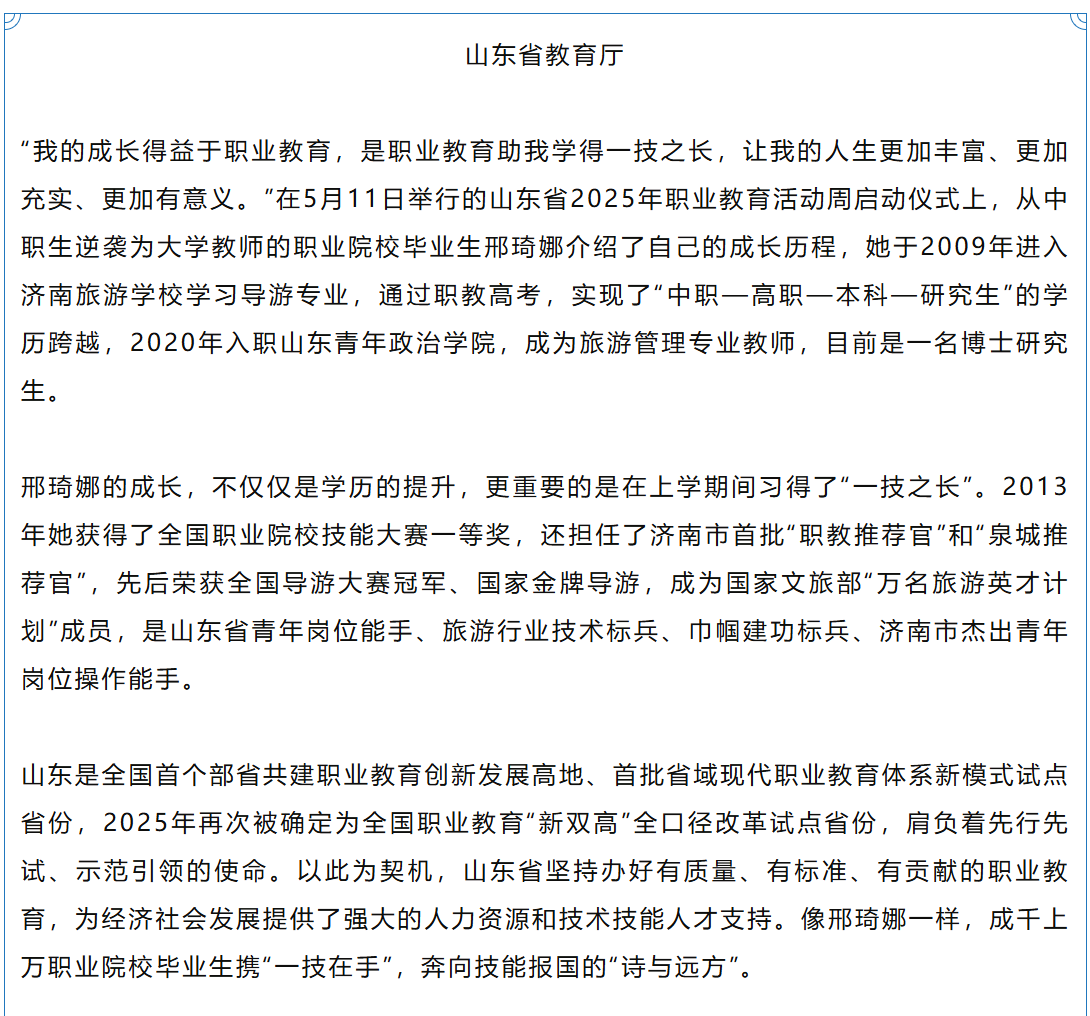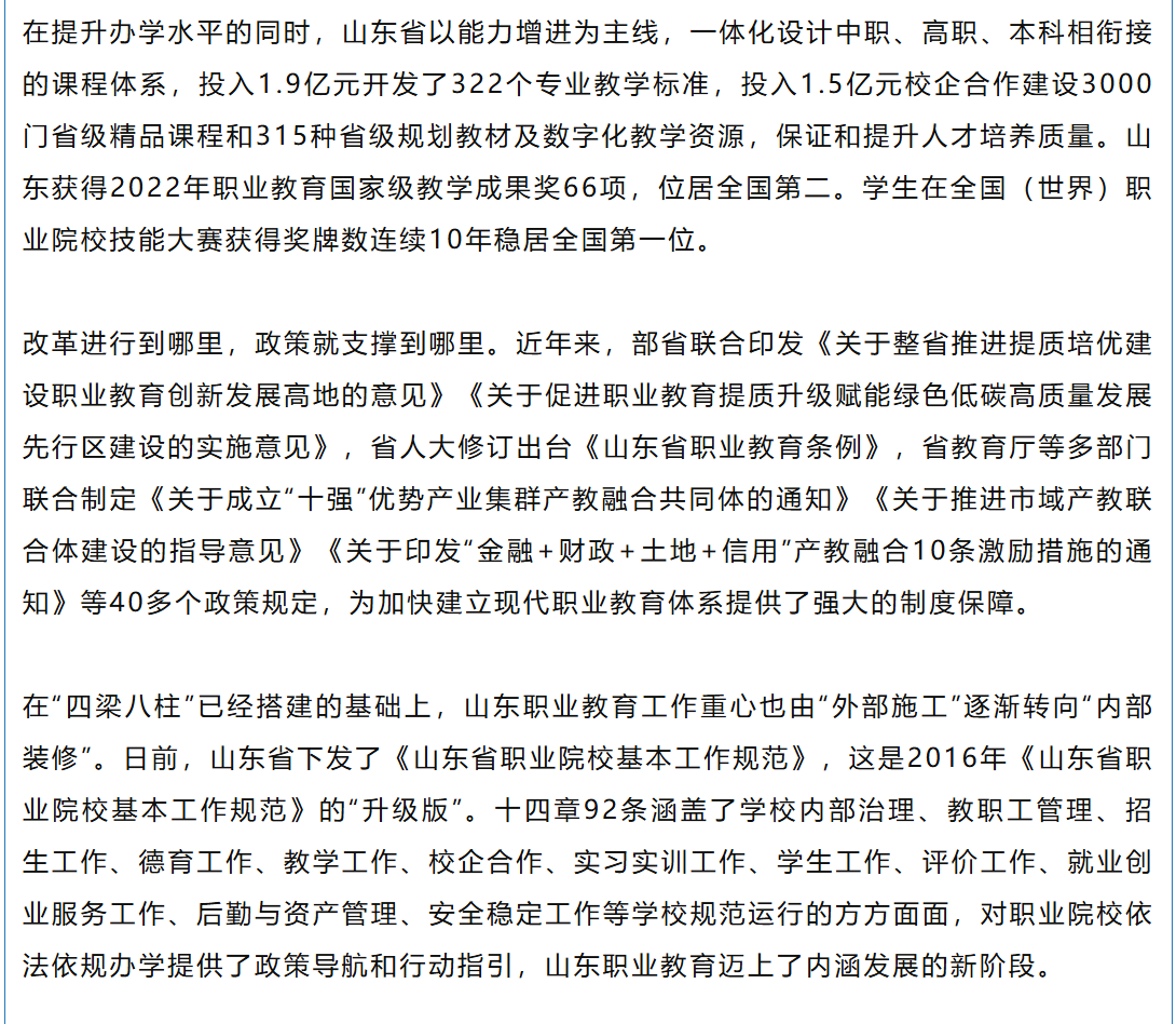 山东是全国首个部省共建职业教育创新发展高地、首批省域现代职业教育体系新模式试点省份,2025年再次被确定为全国职业教育新双高全口径改革试点省份,肩负着先行先试、示范引领的使命。