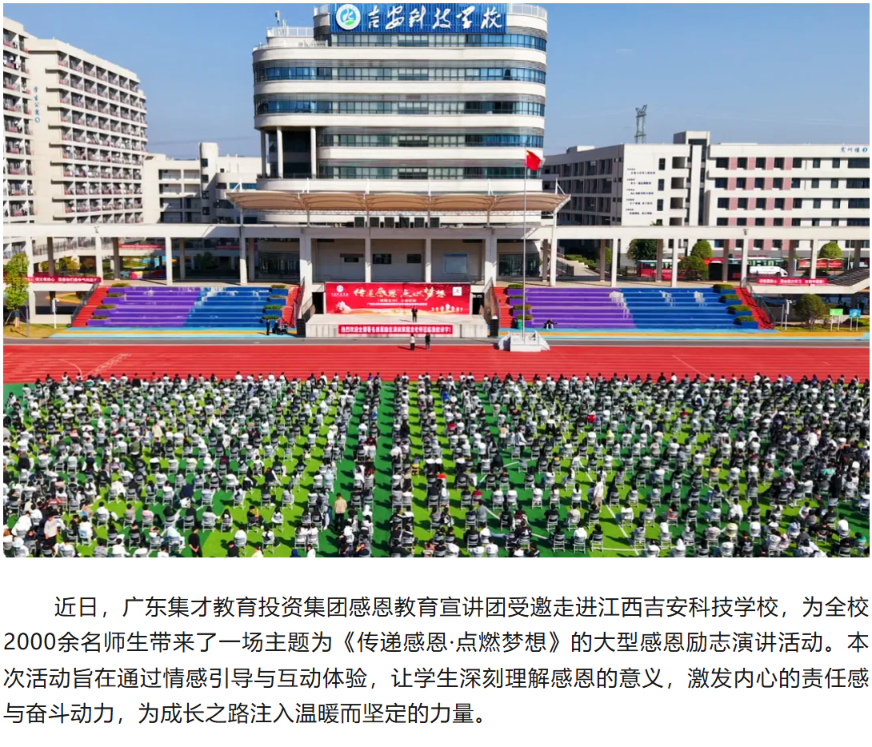 集才新闻 | 热烈祝贺我司送教助学之江西吉安科技学校大型感恩励志演讲取得圆满成功!