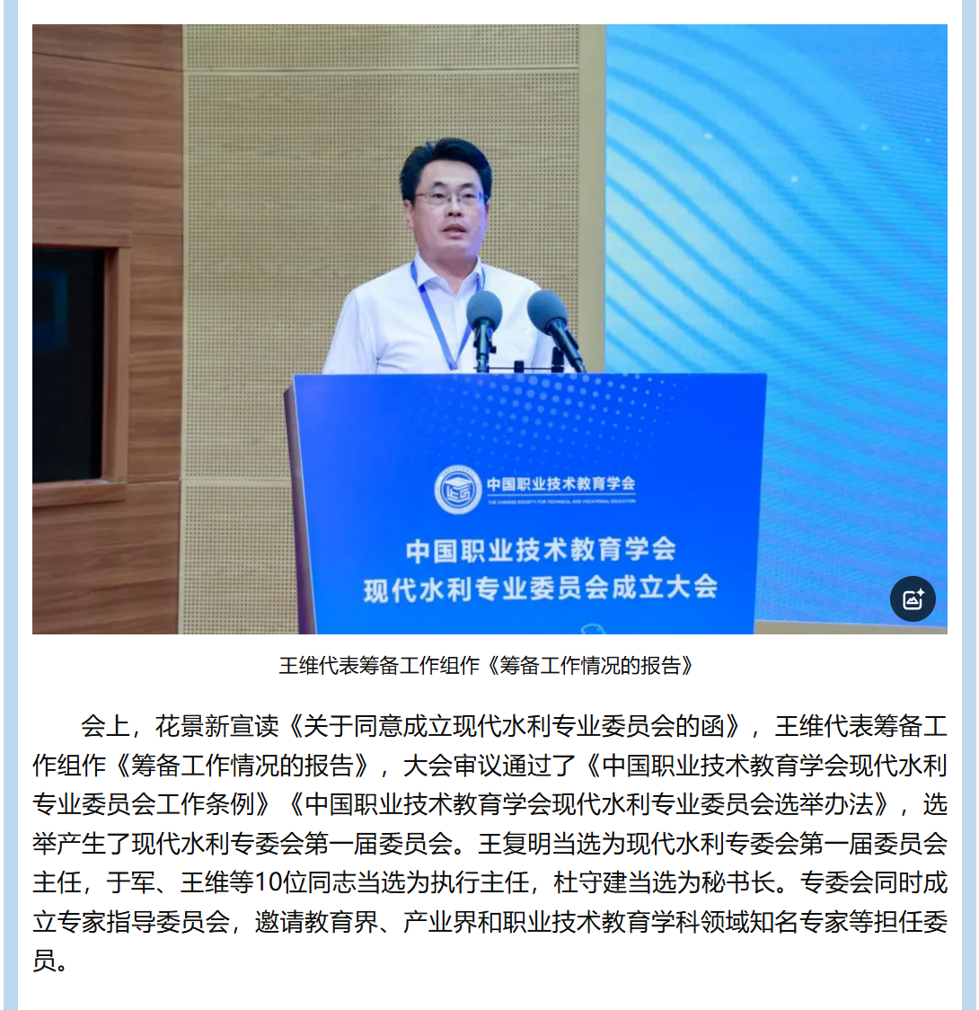 行业动态 | 产教融合,赋能水利职业教育新发展——中国职业技术教育学会现代水利专业委员会成立大会成功召开