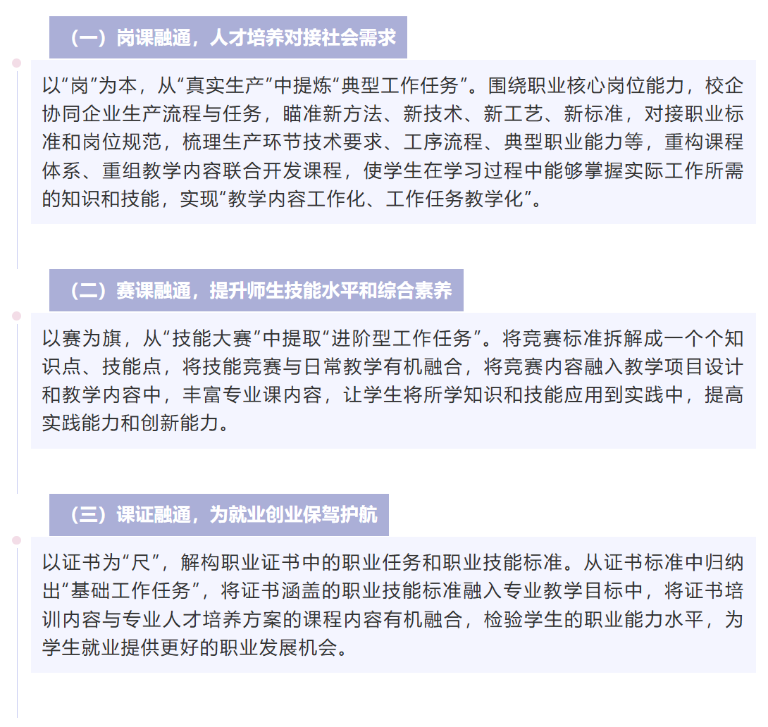 高职院校应积极推进产教融合,深化与行业企业的合作,紧盯区域主导产业、战略性新兴产业,对接产业链关键环节和企业核心岗位,健全专业群运行管理机制和群内专业动态调整机制,快速响应产业变革的最新要求,以企业需求为原点,