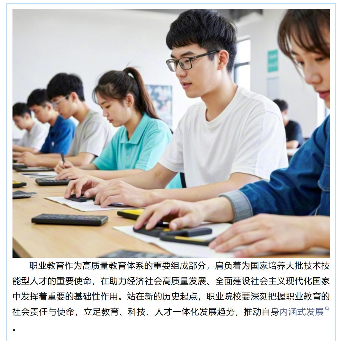 职业教育作为高质量教育体系的重要组成部分,肩负着为国家培养大批技术技能型人才的重要使命,在助力经济社会高质量发展、全面建设社会主义现代化国家中发挥着重要的基础性作用。
