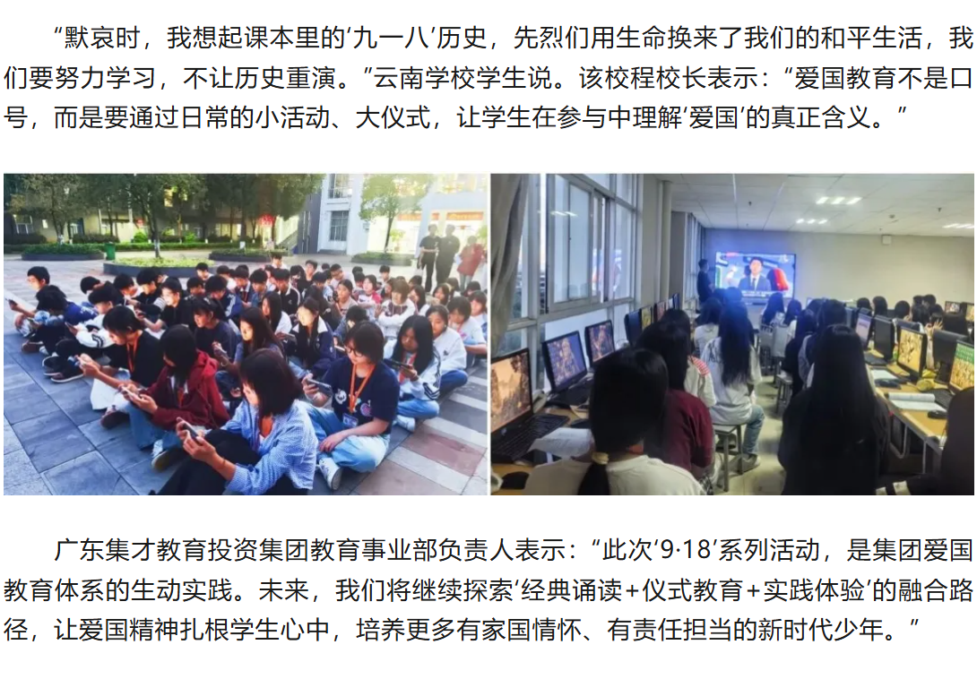 集才新闻 | 铭记历史 勿忘国耻——广东集才教育投资集团旗下多地学校开展“9·18”爱国主义教育系列活动!