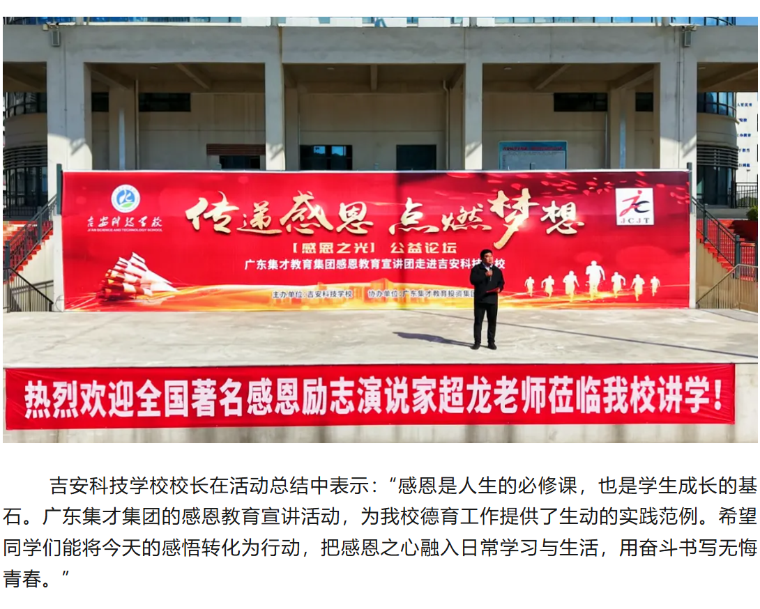 集才新闻 | 热烈祝贺我司送教助学之江西吉安科技学校大型感恩励志演讲取得圆满成功!